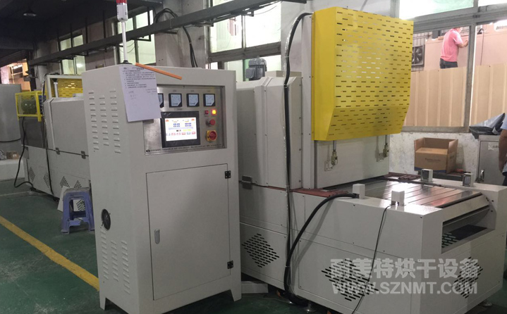 烘干部分總長(zhǎng)4800mm,前后配自動(dòng)提升門,緩沖區(qū)兩端各長(zhǎng)300mm,冷卻區(qū)長(zhǎng)1200mm, 進(jìn)料部分長(zhǎng)600mm,出料部分升降接駁臺(tái)長(zhǎng)700mm ;